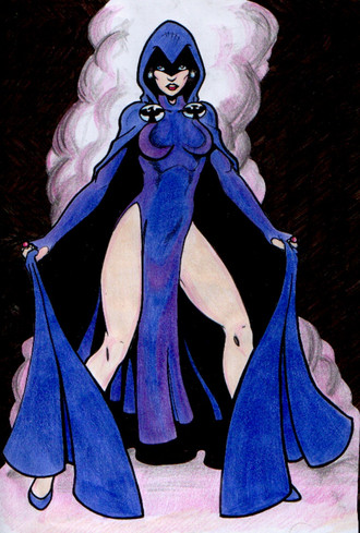 I finally have a bit of time to draw so I'm clearing all of the half finished projects that have been waiting on my desk for far too long! I last drew Raven about a million years ago - it was one of the first bits of art I ever posted on DA and I coloured it with pencil crayons as I still hadn't worked out photoshop! (Original is copied below for maximum embarrassment!) So I figured it was time to return to the character.Raven is (of course) owned by DC Comics and was designed by the late great George Perez.