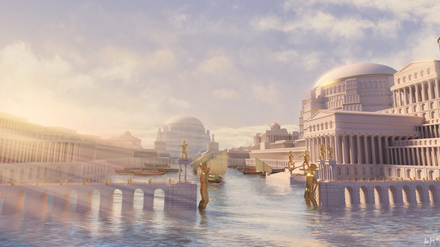 Well yes, that project was Atlantis for a magazine illustration. My instructions were to create something based in between Minoic and Mycenaic civilizations, not a fantasy one.