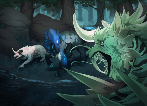 Prompt: ♦ Fish Pond: A large, decorative tank or fountain has been stocked with elusive, glowing fish for you to try your hand at catching. Some say they're actually transformed fair goers who were caught cheating at the games. Draw or write about your Reos fishing for the magical fish!