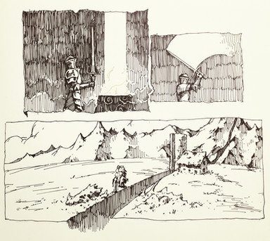 #comic #anime #magic #cliff #elves #fantasy #knight #lineart #manga #medieval #page #panels #rock #sketch #sword #tower #workinprogress