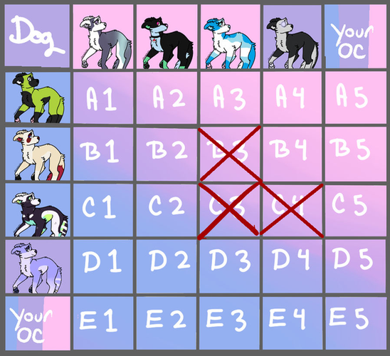 D4 has been crossed out as it would just be and OC x OC slot.