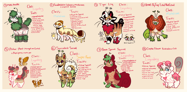 The purple slot results are all pre-made designs based on fusions of the above characters.