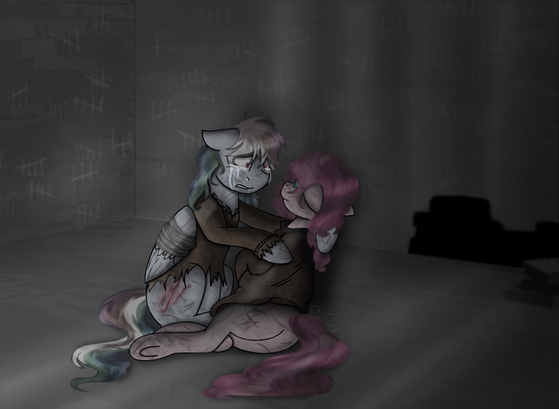 Oh my god, this is amazing in every way. The lighting is ominous, and together with the concrete walls really brings out that air of isolation. The ponies themselves are also drawn in a really nice way, Haisuu witheyes glazed over and Yasei with her mouth full of still warm flesh.. thank you so very much for this.