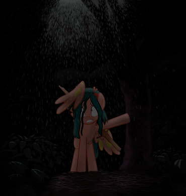 I love the way you compose scenes and draw backgrounds! The darkness and effects here give a perfect feel of heavy rain, it's just wonderful!