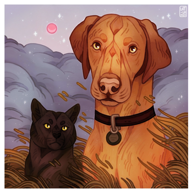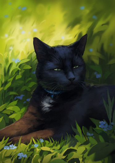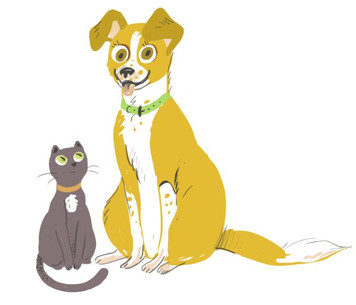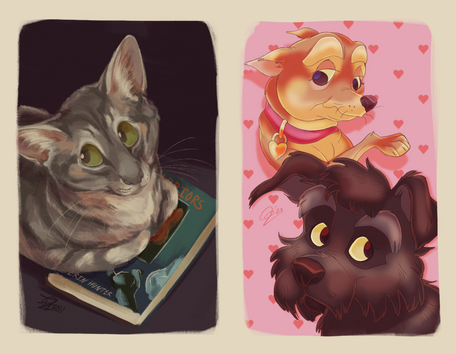 The style you developed with the ponies lends itself well with these animals. The picture looks both simple and intricate at the same time and would look wonderful in a children's book (a very detailed one at that). I like all the lines on the fur of the animals. I also like how the shaded areas of the cat are a lighter orange (stomach and foreleg).