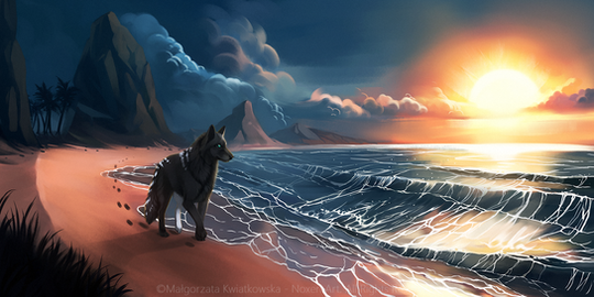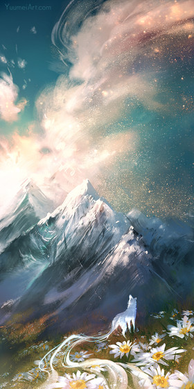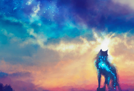 Wow, this is just beautiful. I love the colours and the wolf at the bottom is great; so much depth in one picture.