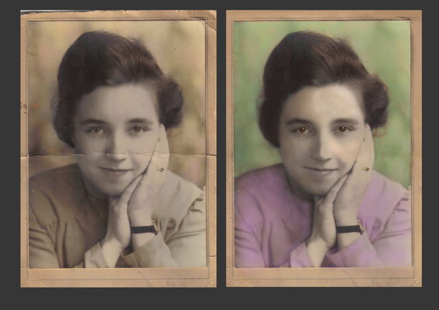 a did something like that with a pic of my great grandather, i didnt do coloring tho