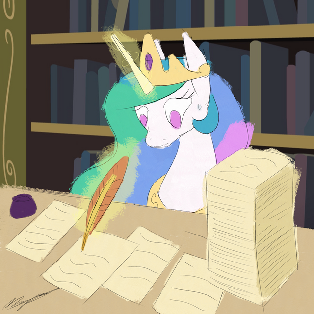 You know Celestia, there's this thing called a constitutional monarchy. You could force most of that paperwork on a bunch of elected and appointed bureaucrats.