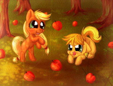 d'awwww baby Applejack is adorable, especially with those huuuuge apples in her mouth. And of course her freckles!