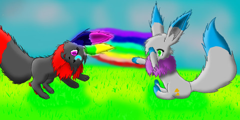 My part of an Art-Trade withhehe we are playing roleplay or something XD