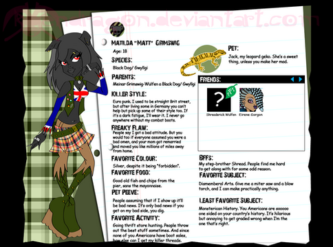 EDIT 1.OCT.13: Updated friends box area.I decided over my recovery/100 day hiatus that I was going to refocus my MH stuffs, because I have so many chars that I feel horrible not using half of them. So those who’s stories I’m happy with atm, are getting second shelved (not erased), while I’m going to focus more on a select few who have stories I’d like to work on.