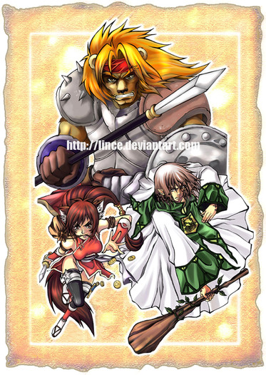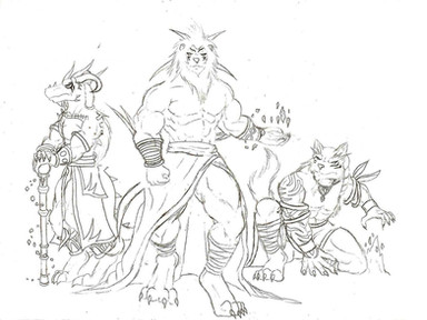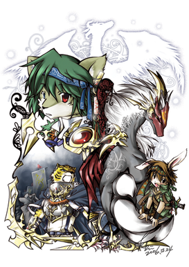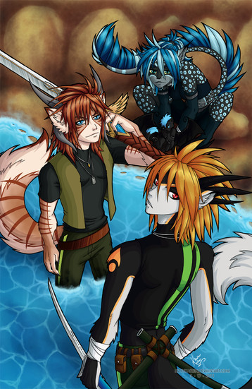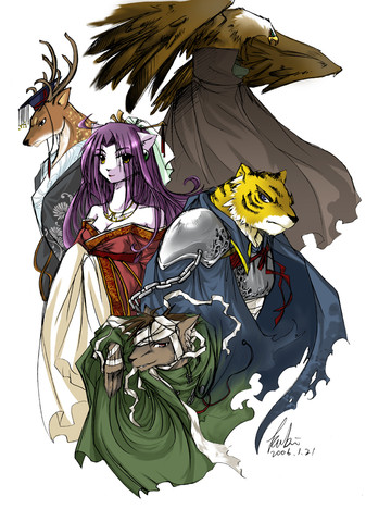 Beautiful picture <3 I love all the details in here, especially for the mystical creatures in the back and front...plus the character designs are really awesome. Begs a story.