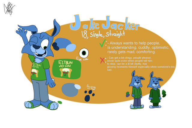 'bout time a new ref came out for this fluffy bunbutt huh?yes, the long awaited reference for jake is here!! with a new pj's design because... i honestly didn't like the design of his last pj's? X'DDD (ironically the reason why i kept resisting on a ref for jake for so long ;w; )