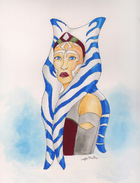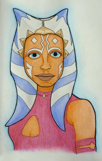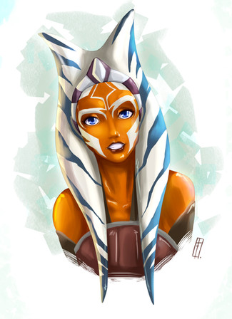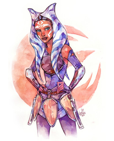 Ahsoka Tano from Star Wars Rebels :] I am just soooo excited for 2nd season!watercolour + ink + white gel pen