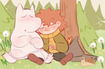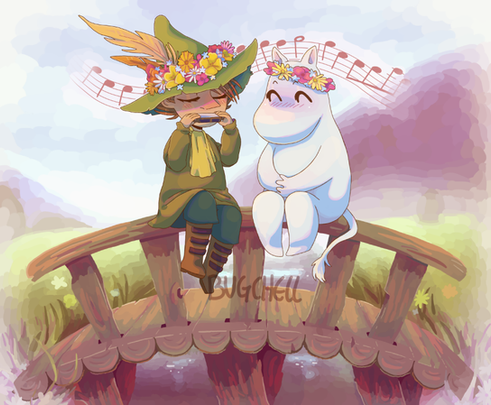 Ogólnie zmierzasz w dobrym kierunku tworząc otoczenie postaci i różnicując pędzle i tekstury.