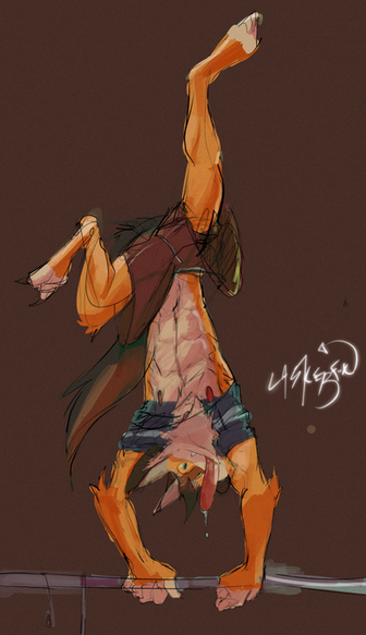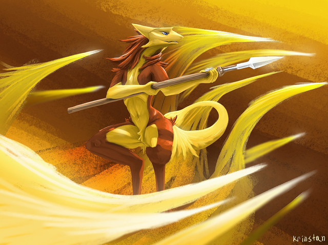 #digitalart #furry #acrobatics #anthro #background #cloth #clouds #coloured #female #flip #scenery #sky #solo #spear #tribal #sergal #thick_thighs