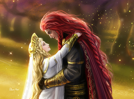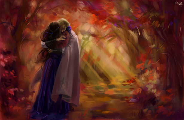 #digital #fantasy #forest #girl #man #original #red #wings #art