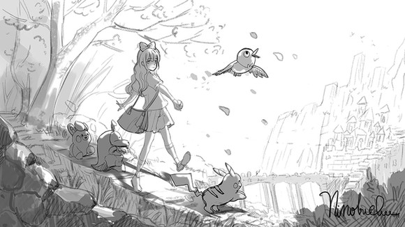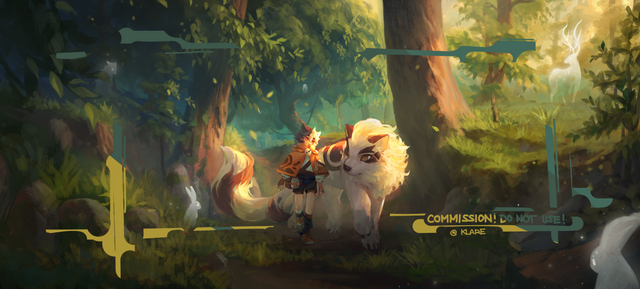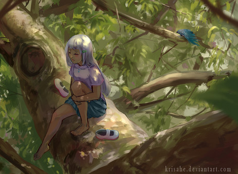 #anime #bird #digital #forest #girl #green #nature #tree #water #art