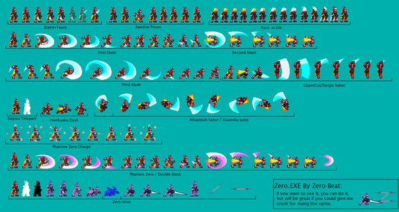 here is my first sprite of Zero.EXEI put the original atacks of the series, the game and customized blaster attack