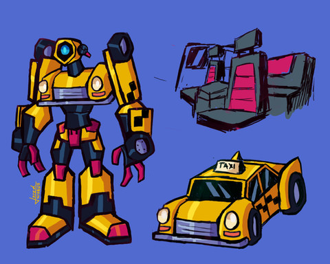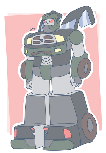 He's a mercedes GLE. The camera on his shoulders serves as his eyes, he is otherwise blind. His vehicle mode is matte black but I tried giving him some red in robot mode.