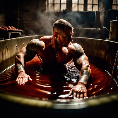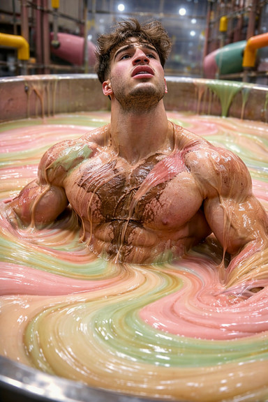 #digitalart #abs #biceps #bodybuilder #chesthair #cinematic #fantasyscene #forearms #handsomeguy #hyperrealism #malebeauty #physique #sparkles #strength #tiedup #trapped #wetskin #purpleglitter #ultrarealism #muscularman #industrialscene #aestheticmuscle #cosmeticfactory #pumpedarms #glittervat #factorytank #wristsrope