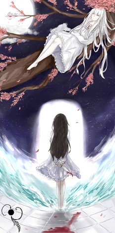 #after #before #demon #moon #oc #red #ribbon #silver #krisstal #krisstal06 #drawing #originalcharacter #water #white