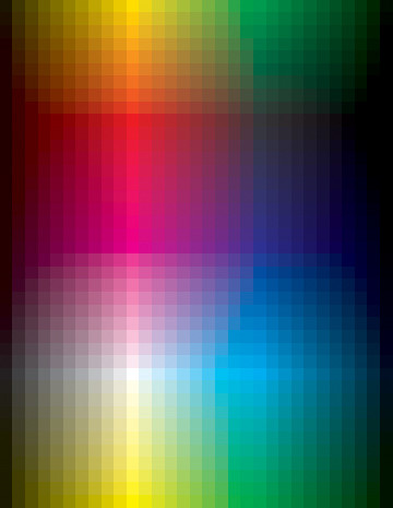 I have been working on this for quite sometime. I work for a paint company and I am in the process of rebuilding their website. This is one of the graphics I have been working on. Total time spent was roughly 60 hours.There are 720 blocks of individual color. These colors represent the fant deck I use to mix paint colors. I sat down and added each individual block and spent a good week doing it.