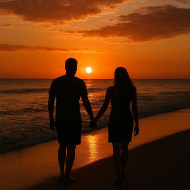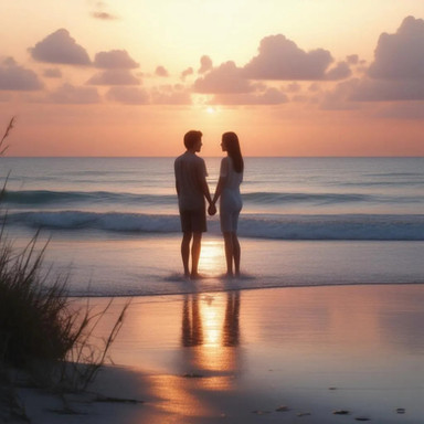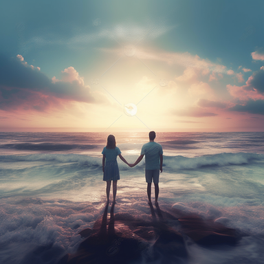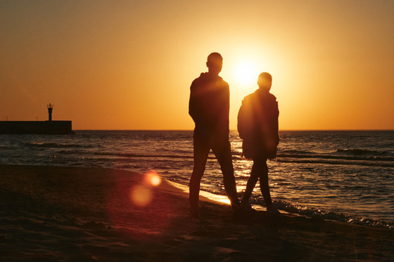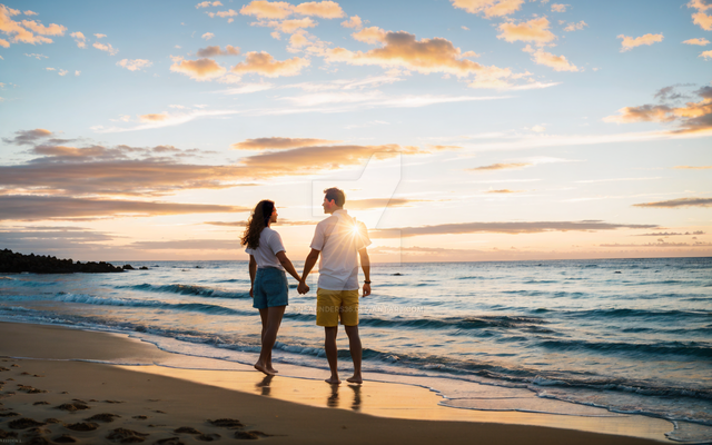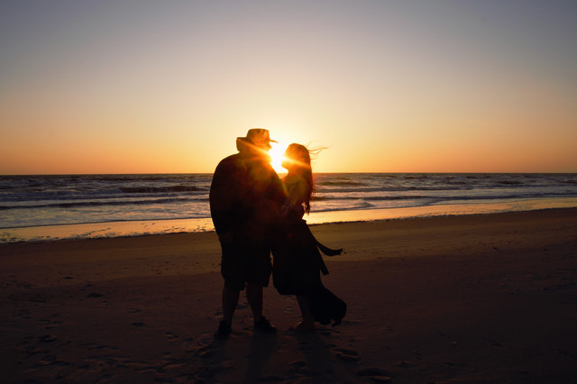 This is really lovely first off! An beachfront view is always a lovely setting for for a them of love which is nicely captured by your subjects. the warm glow of the sun sets the warm mood quite nicely and it also makes a for good framing with the sunlight right between the your subjects beautiful.