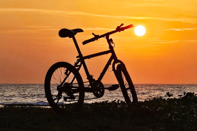 #bike #blue #breeze #golden #ocean #reflectoin #sky #summer #sunrise