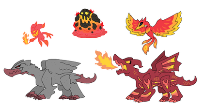 -Fr/Er) Lava Bomb: fires a molten blob that solidifies in the air and explodes on impact.