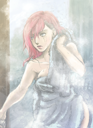 Ese cuerpo...ese color...ese pelo... :'3 me encantan esos tonos más rosas en la piel y están muy bien colocados x3 la pose es genial y la rematas con una mirada picarona que... Grrrr :3 podrías haberle puesto la mano detrás de la sábana ewe