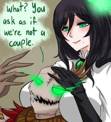 Not sure if still drunk or simply being a little bitch to his waifu.Fiddlesticks (c) League of Legends, Riot games
