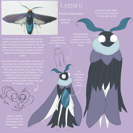 I made a neighbor for Rozen, also.. because I've lacked another moth king to fill in the roles from the Eclipse of Moff squad oof.Basically, there's like Four Kings in the Eclipse; Sinclair, Rozen, Noctae and this moffbab Reficul. (Valravn doesn't count since he's not of their generation and Haskell isn't royalty-oof)