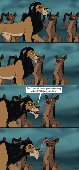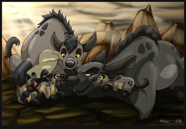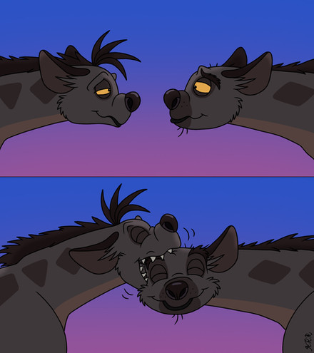 Ed channels his inner shadow master to have a family reunion with Shenzi and Banzai. Little Janja's a bit scared at first, but he figures Uncle Ed knows what he's doing.It's been a little over a year since "Kings and Vagabonds" ended. I kind of needed a break after 2 years of working on the comic, but now that my Crocuta book is finished, I'm going to try drawing more regularly again. I do have another novel in the works (not hyena-related, but also centered around a lot of nature and morality themes). It's TLK time for now, though.