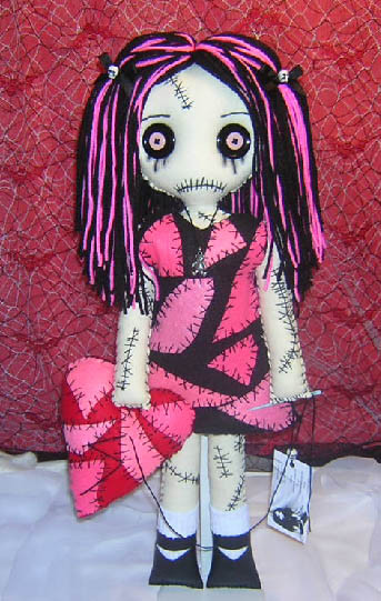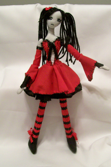 That's my new friend. Her name is Ruby. This little girl have 10 cm in length (one arm have 2 cm). Under the dress she have small body with sewn little (1 cm) heart (in upper right corner is this heart foto). I used woollen, white material to skin, five black, woollen yarn to hair, black wool to shoes, grated material to dress and tape to strip. And (of course) buttons! Her eyes look like from the film "Coraline". Button to strip is from my shirt (yes, I broken my shirt for one, little button). For two days I sat, closed in my room and I crafted this doll(music was with all this time). I tell you one, dude - she have a soul.Related content