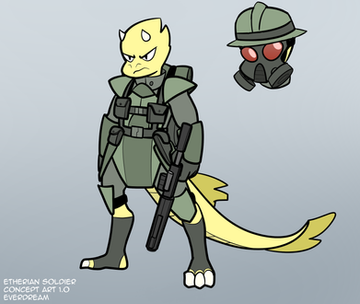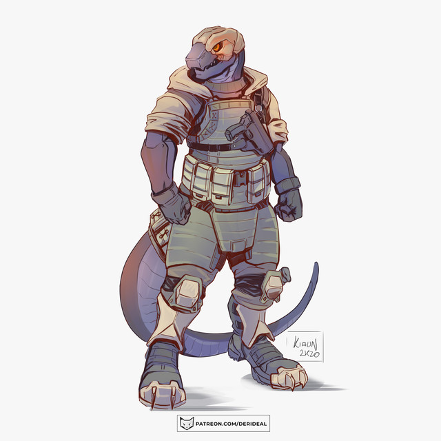 #anthro #armor #cancel #canine #furry #human #male #concept_art #original_species #size_difference #sciencefiction