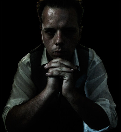 I like this piece alot. I like the connection between his hands and his surroundings. It seems to remind me of the blurred boundaries between free thought and reality. I also see suffering, or inner conflict. All in all a very solid piece of art. A++