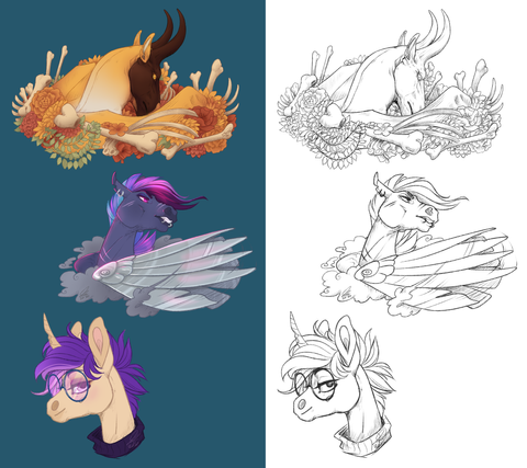 Another batch of old commissions I figured to share before I'll eventually move onto newer art. I don't draw animal art much at all any more but I'm still proud of these little portraits.