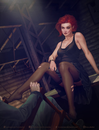 I just love how high-spirited and sarcastic she is in the game. So I wanted to make her chilling a bit in Kaer Morhen. It was a different angle to make the picture, since I'm not used at drawing character from a "bottom perspective" but it was interesting nonetheless.
