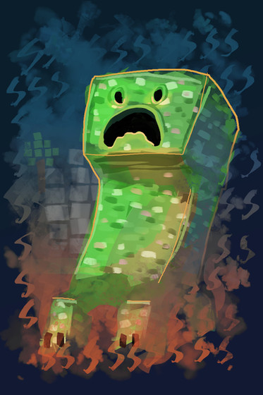 Attempt at a 'speed' painting [which took 45 minutes] of a Creeper, because they are appropriately terrifying for use in a Halloween picture. Great job, Notch.