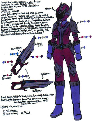 Origin: Daughter of a human mother and an Aquitic father; Luna Tideus, the Ecliptic Ranger, once led a group of intergalactic guardians called the Equinox Rangers, fighting evil and protecting the galaxy for well over a decade. And then along came Dark Specter, the "Grand Monarch of Evil", whom destroyed Luna's team, along with Eltar's peacekeeping force. Only Luna survived as she managed to escape, living on with a depp sense of survivor's guilt. Only way she could cope was to become a marshal, patrolling the galaxy alone and hunting evildoers along the way. That includes meddling menaces such as the maniacal Psycho Rangers. Will she ever know peace in her heart again? Who knows...?