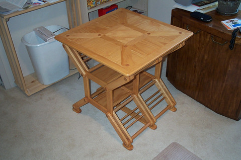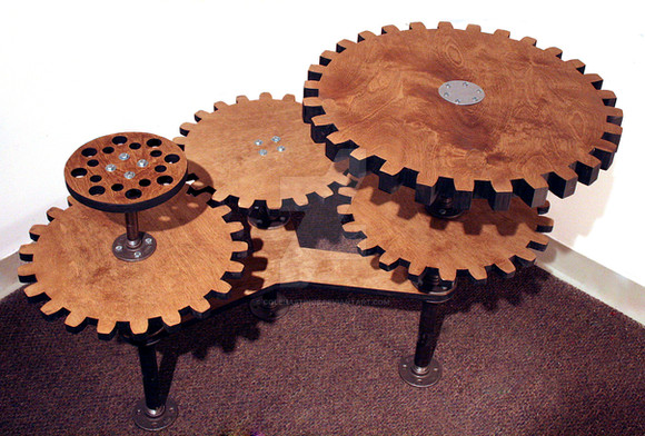 This table is the sibling of the other table with an altered design (I didn't feel like building 2 of the same thing). I designed it in Lightwave and built it with pine and oak dowels.Related content