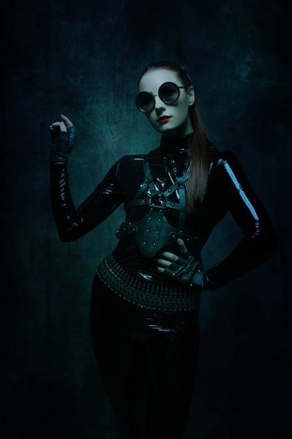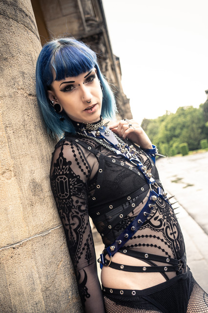 #belt #chainbra #ammunition #blueeyes #bluehairedgirl #gothicfashion #gothicgirl #gothicmodel #gothicstyle #piercings #portraitgirl #piercinggirl #piercingsandtattoos #piercingsexy