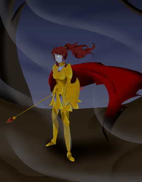 Great creativity and a wonderful start to dynamic poses. I always tell myself to hone my skills with the most hardest techniques so that when I am faced with a slightly intermediate obstacle, it will be easy. Don't forget when it comes to lighting, to add a rim effect especially on her shoulders plates, sharper edges will have that light reflecting on, etc. For instance her right arm (On the left side of the image) her gauntlet is glowing, that specific light should be seen on some of her pelvic region or hips, skirt, etc. Soft brushes are nice but they'll be much more effective if you practice cell shading before. I recommend to lock the layer and mask and refine those shapes. Add a separate layer on top for the glow via color dodge/overlay techniques. You have the correct vision and path, continue to practice and sharpen your skills! :3