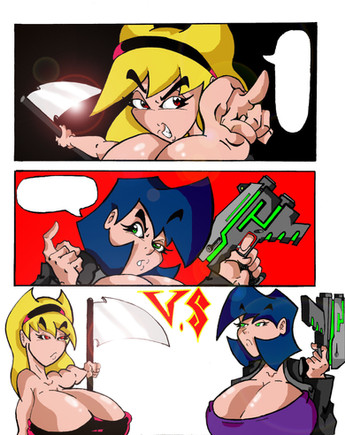 This girl on girl action looks pretty cool with your style man and such a powerful way you planned it out with how their posed her man, damn looks like this is gonna be a sweet ass battle. ^_^