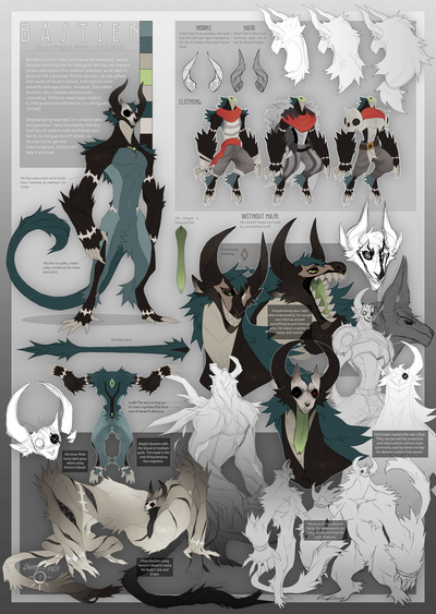 He's not a hard guy to draw. Really, he's prety quick and easy. The Only catches are his Tail and Wings in as a Dragon. And only because in the wings, Digitally, it's hard to keep a consistent width. I cheated on the big pic, but on the standing and the chibi ones (and the flying one as well, but it's hidden) you can notice the wings bones change a lot. And the tail it's because I sketch a line generally marking where it's supposed to go, then draw the segments towwards the end. Meaning they end up somewhere else entirely So it's a bit complicated to make it move as I want to most of the time. I know how I could do so it would behave like any other of my tails, but it would at least double the time I take drawing it, so I hardly do that