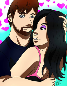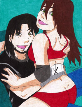 Commission lineart for She wanted her OC Sabrina and CM Punk.Sorry about this. It's my first short haired Punk. <3