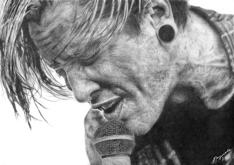 Absolutely amazing. The details are all highly beautiful. I don't think I've ever seen a more realistic, lifelike portrait. I especially love how you even sketched in the mirrored effect on his aviators, as well as drawn every tattoo perfectly. Beautiful.