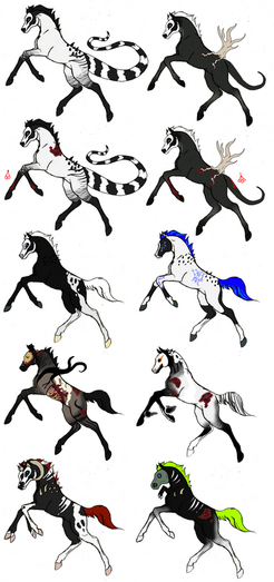 Guillotine - Mane/tail metal blades. Loves chopping things with its tail. Blood frequently spatters its coat. Day of the dead type mask design on its face. MINE