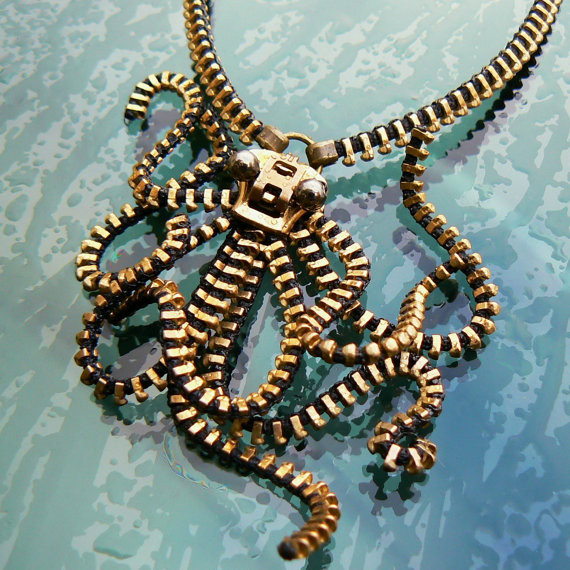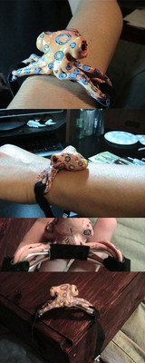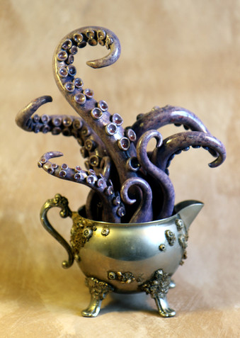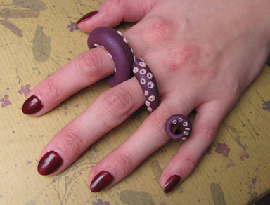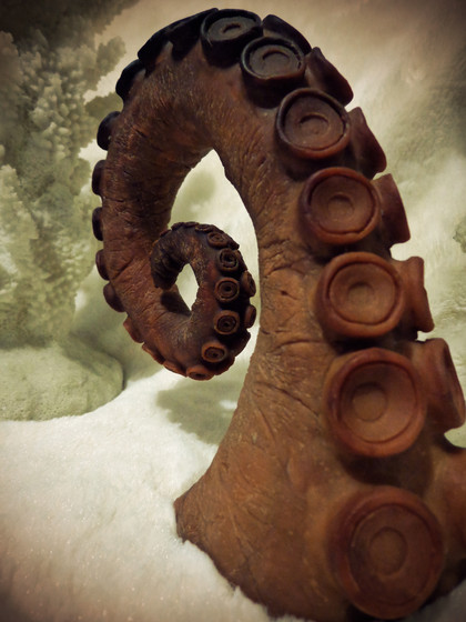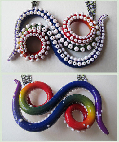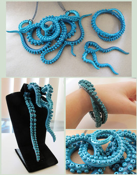 This set has sold~The colors for this set were inspired by the changing colors of the leaves in Fall and consists of a gradient from a shimmer orange to a deep shiny copper-brown with dark red/copper accents. This intensely eye catching tentacle jewelry set is a statement piece that is fun yet elegant. It is a wearable piece of art and sculpture.